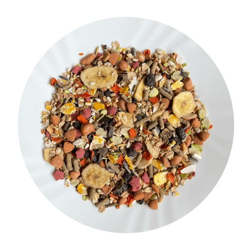 Avicentra Malý hlodavec Deluxe je kompletné výberové krmivo určené pre škrečky, potkany a myši. Zmes obsahuje vysoký podiel ovocia, orechov, semienok a ďalších prírodných dobrôt, ktoré podporujú zdravie, vitalitu a aktivitu drobných hlodavcov.