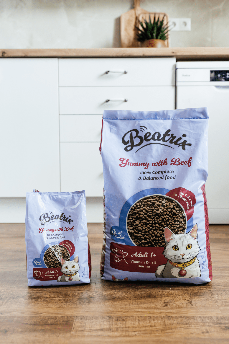 Beatrix Adult má zloženie prispôsobené potrebám dospelých mačiek – menej bielkovín a tukov ako krmivo pre mačiatka, pretože ich organizmus už nie je vo fáze intenzívneho rastu.