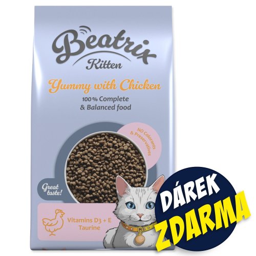 Krmivo Beatrix Kitten s kuracím 10kg + Kapsička Beatrix Adult s kuracím 85g