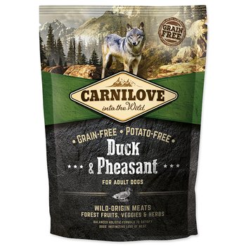 Zloženie: dehydrovaná kačica (30 %), dehydrovaný bažant (22 %), žltý hrach (20 %), kurací tuk (chránené tokoferoly 8 %), čerstvá kačica (5 %), kuracia pečeň (3 %), jablká (3 %) ), tapiokový škrob (3 %), lososový olej (2 %), mrkva (1 %), ľanové semienko (1 %), cícer (1 %), hydrolyzované škrupiny kôrovcov (zdroj glukosamínu, 0,026 %), extrakt z chrupaviek ( zdroj chondroitínu, 0,016 %), pivovarské kvasnice (zdroj mannán-oligosacharidov, 0,015 %), koreň z čakanky (zdroj frukto-oligosacharidov, 0,01 %), juka schidigera (0,01 %), morská rias ), psyllium (0,01 %), tymián (0,01 %), rozmarín (0,01 %), oregano (0,01 %), brusnice (0,0008 %), čučoriedky (0,0008 %), maliny (0,0008%). Analytické zložky: hrubý proteín 37 %, obsah tuku 18 %, hrubý popol 8,5 %, hrubá vláknina 2,5 %, vlhkosť 10 %, vápnik 1,8 %, fosfor 1,5 %. Nutričné doplnkové látky na 1 kg: vitamín A (E672) 20 000 oi , vitamín D 3 (E671) 1 500 oi , vitamín E (α-tokoferol) (3a700) 400 mg, zinok (E6) 85 mg, želez E1) 70 mg, mangán (E5) 35 mg, jód (E2) 0,65 mg, meď (E4) 15 mg, selén (3b8.10) 0,25 mg. Metabolizovateľná energia: 3 900 kcal/kg. Kŕmny návod: Podávajte suché alebo navlhčené vodou. Denná dávka sa bude líšiť podľa veku, veľkosti, výkonu a prostredia. Odporúčané denné dávkovanie je uvedené v kŕmnej tabuľke. Pokiaľ podávate krmivo Carnilove prvýkrát, v prvom týždni podávajte zmiešané s pôvodným krmivom a postupne navyšujte podiel Carnilove v celkovej dennej dávke. Nezabudnite na kŕmenie vždy pripraviť miskou s čerstvou pitnou vodou. Spotrebujte do dátumu uvedeného na obale. Uchovajte v suchom a chladnom mieste.