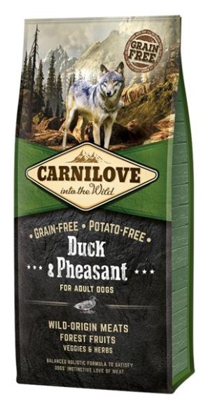 Zloženie: dehydrovaná kačica (30 %), dehydrovaný bažant (22 %), žltý hrach (20 %), kurací tuk (chránené tokoferoly 8 %), čerstvá kačica (5 %), kuracia pečeň (3 %), jablká (3 %) ), tapiokový škrob (3 %), lososový olej (2 %), mrkva (1 %), ľanové semienko (1 %), cícer (1 %), hydrolyzované škrupiny kôrovcov (zdroj glukosamínu, 0,026 %), extrakt z chrupaviek ( zdroj chondroitínu, 0,016 %), pivovarské kvasnice (zdroj mannán-oligosacharidov, 0,015 %), koreň z čakanky (zdroj frukto-oligosacharidov, 0,01 %), juka schidigera (0,01 %), morská rias ), psyllium (0,01 %), tymián (0,01 %), rozmarín (0,01 %), oregano (0,01 %), brusnice (0,0008 %), čučoriedky (0,0008 %), maliny (0,0008%). Analytické zložky: hrubý proteín 37 %, obsah tuku 18 %, hrubý popol 8,5 %, hrubá vláknina 2,5 %, vlhkosť 10 %, vápnik 1,8 %, fosfor 1,5 %. Nutričné doplnkové látky na 1 kg: vitamín A (E672) 20 000 oi , vitamín D 3 (E671) 1 500 oi , vitamín E (α-tokoferol) (3a700) 400 mg, zinok (E6) 85 mg, želez E1) 70 mg, mangán (E5) 35 mg, jód (E2) 0,65 mg, meď (E4) 15 mg, selén (3b8.10) 0,25 mg. Metabolizovateľná energia: 3 900 kcal/kg. Kŕmny návod: Podávajte suché alebo navlhčené vodou. Denná dávka sa bude líšiť podľa veku, veľkosti, výkonu a prostredia. Odporúčané denné dávkovanie je uvedené v kŕmnej tabuľke. Pokiaľ podávate krmivo Carnilove prvýkrát, v prvom týždni podávajte zmiešané s pôvodným krmivom a postupne navyšujte podiel Carnilove v celkovej dennej dávke. Nezabudnite na kŕmenie vždy pripraviť miskou s čerstvou pitnou vodou. Spotrebujte do dátumu uvedeného na obale. Uchovajte v suchom a chladnom mieste.