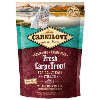 Carnilove Kapor & Pstruh je superprémiové, holistické kvalitné krmivo bez obilnín a zemiakov s čerstvým mäsom pre dospelé kastrované mačky.