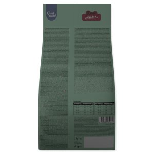 Zloženie: | Obilniny, mäso a výrobky živočíšneho pôvodu (z toho sušené hovädzie 20 %), vedľajšie výrobky rastlinného pôvodu (z toho sušená čakanka 0,2 %), ryby a vedľajšie výrobky z rýb, zelenina (z toho hrášok 4 %), oleje a tuky, semienka, minerálne látky. |