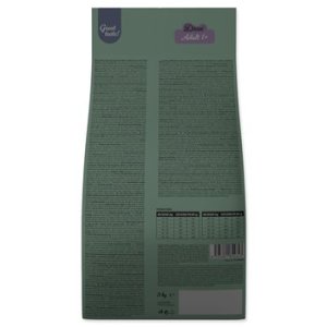Zloženie: | Obilniny, mäso a výrobky živočíšneho pôvodu (z toho sušené jahňacie 4 %), vedľajšie výrobky rastlinného pôvodu (z toho sušená čakanka 0,2 %), ryby a vedľajšie výrobky z rýb, zelenina (z toho hrášok 4 %), oleje a tuky, semienka, minerálne látky. |
