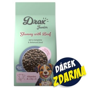 Krmivo Drax Junior s hovädzím 3kg+Konzerva Drax Adult s jahňacím a kuracím 415g