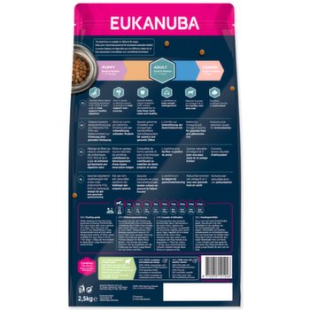 Jahňacie mäso predstavuje veľmi dobre stráviteľnú výživu , vhodnú aj pre citlivé psy . Krmivo značky Eukanuba poskytuje optimálnu dennú dávku proteínov, tuku, karbohydrátov, dôležitých vitamínov a minerálov pre zdravie a pohodu vášho psa. Obsahuje prísady vysokej kvality a veľké množstvo živočíšnych proteínov.