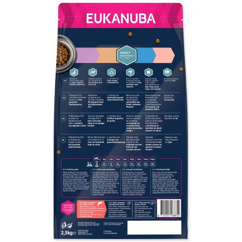 100% kompletné a vyvážené krmivo pre dospelé psy malých a stredne veľkých plemien , uprednostňujúcich krmivo s mäsom z lososa pre ľahké trávenie a vynikajúci stav kože a srsti.