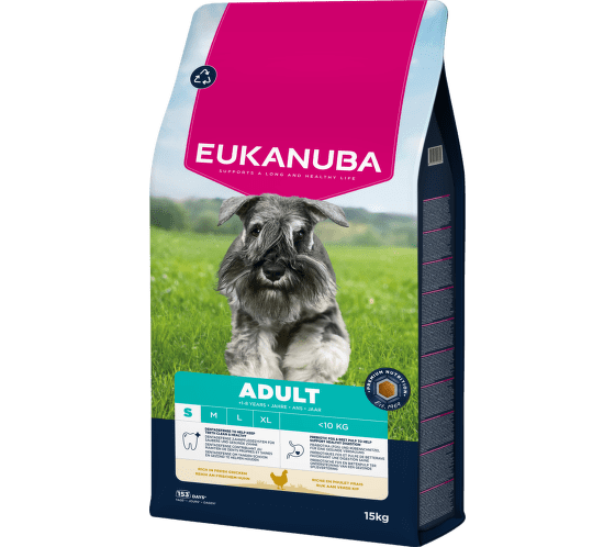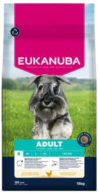 Zloženie: | Sušené kuracie a morčacie (30% vrátane kuracie 21%, prirodzený zdroj glukosamínu, chondroitínu a taurínu), čerstvé kuracie (15%), jačmeň, pšenica, kukurica, hydinový tuk, cirok, ovos, sušená repná duž látky (vrátane hexametafosforečnanu sodného 0,35 %), sušené celé vajcia, fruktooligosacharidy (0,38 %, prírodné prebiotikum). |