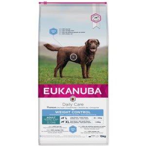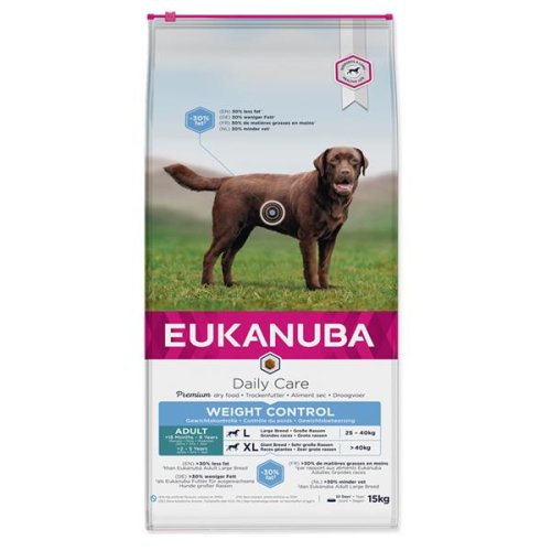 100% kompletné a vyvážené krmivo pre dospelé psy veľkých a obrích plemien, ktorí majú nadváhu alebo sú menej aktívne. Kompletné krmivo pre menej aktívne dospelé psy veľkých a obrích plemien od 1 do 6 rokov s váhou od 25 do 40 kg a od 2 do 6 rokov pre psy s váhou nad 40 kg. Krmivo značky Eukanuba poskytuje optimálnu dennú dávku proteínov, karbohydrátov, dôležitých vitamínov a minerálov pre zdravie a pohodu vášho psa. Táto strava má znížený obsah tuku, čím napomáha k udržaniu optimálnej váhy a minimalizácii zaťaženia kĺbov. Niektoré tuky boli nahradené karbohydrátmi s nižším obsahom kalórií bez toho, aby došlo k strate výživovej hodnoty. Výživa obsahuje zložku FlexMobility (systém starostlivosti o kĺby), ktorej výživová zložka podporuje zdravé kĺbové chrupavky. Obsahuje prísady vysokej kvality a veľké množstvo živočíšnych proteínov.