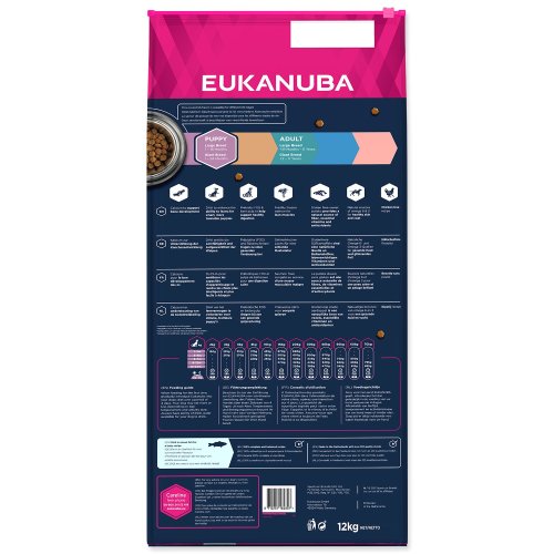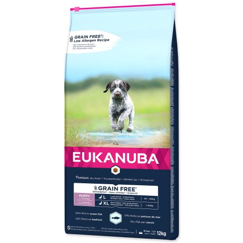 Eukanuba Grain Free* receptúra pre šteňatá veľkých plemien s nízkym obsahom alergénov je starostlivo zostavená tak, aby krmivo neobsahovalo bežné alergény. Šetrné zloženie predstavuje alternatívu pre šteňatá so zvláštnymi nutričnými požiadavkami, ktorá obsahuje nevyhnutné vitamíny a minerály na podporu zdravého rastu a vývoja.
