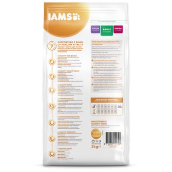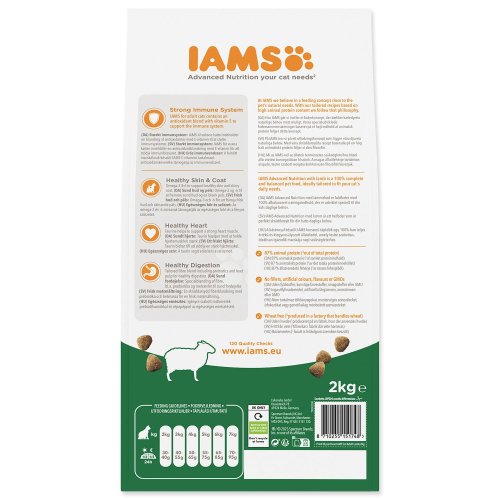 Krmivo IAMS for Vitality pre dospelé mačky je 100% kompletné a vyvážené, odborníkmi zostavené krmivo , ktoré bude vášmu zvieraťu chutiť a svedčiť. Naša nová a vylepšená receptúra pre dospelé mačky s jahňacím mäsom je založená na kvalitných živočíšnych bielkovinách starostlivo vybraných tak, aby podporovali sedem znakov zdravej vitality mačky. Aby boli mačky zdravé, aktívne a plné energie, obsahujú naše lahodné receptúry až 87 % živočíšnych bielkovín (z celkového obsahu bielkovín).