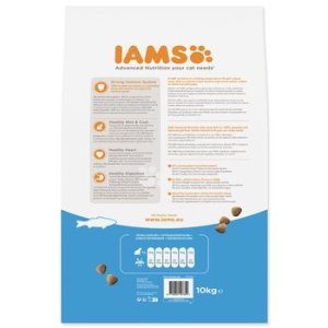 Našim záväzkom je ponúknuť mačkám špecializované krmivo so skvelou chuťou, ktoré si váš domáci maznáčik bezvýhradne zamiluje a ktoré bude podporovať všetkých sedem znakov zdravej vitality. Vďaka vyváženému obsahu omega-3 a omega-6 mastných kyselín v krmive IAMS budete môcť obdivovať zdravú kožu a lesklú srsť vášho zvieraťa. Svoje receptúry sme vyvinuli tak, aby znižovali pH v močovej sústave a udržali ju zdravú. Pripravte sa, že vaše zviera bude skákať a vyčíňať. To vďaka kvalitným bielkovinám a nevyhnutným minerálom, ktoré pomáhajú udržať zdravé svaly a kĺby. Kombinácia antioxidantov s vitamínom E posilňuje imunitu, takže vaše zviera už pri výpravách nič neohrozí. A keď ho budete počuť chrúmať naše granule s vyváženým obsahom minerálov v každom súste, môžete si byť istí, že bude mať silné a zdravé zuby. Pri upratovaní mačacej toalety oceníte zdravé trávenie mačky vďaka optimálnej kombinácii vlákniny, prebiotík a repnej dužiny. Naše krmivá navyše obsahujú sedem základných živín pre zdravé srdce, aby vám váš miláčik nikdy neprestal prejavovať lásku.