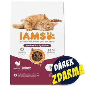 Krmivo IAMS Cat Adult Sensitive Digestion Turkey 10kg + Kapsička IAMS (12x85g) ZADARMO