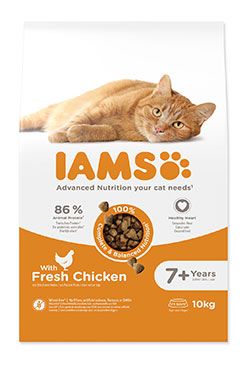 Krmivo IAMS for Vitality pre mačacie seniorov je 100% kompletné a vyvážené, odborníkmi zostavené krmivo , ktoré bude vášmu zvieraťu chutiť a svedčiť. Naša nová a vylepšená receptúra pre mačacie seniorov s čerstvým kuracím mäsom je založená na kvalitných živočíšnych bielkovinách starostlivo vybraných tak, aby podporovali sedem znakov zdravej vitality mačky. Aby boli mačky zdravé, aktívne a plné energie, obsahujú naše lahodné receptúry až 88 % kuracieho mäsa (z celkového obsahu bielkovín).
