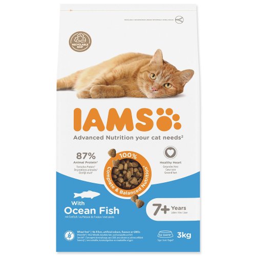 Krmivo IAMS for Vitality pre mačacie seniorov je 100% kompletné a vyvážené, odborníkmi zostavené krmivo, ktoré bude vášmu zvieraťu chutiť a svedčiť. Receptúra s morskými rybami je založená na kvalitných živočíšnych bielkovinách starostlivo vybraných tak, aby podporovali sedem znakov zdravej vitality mačky.