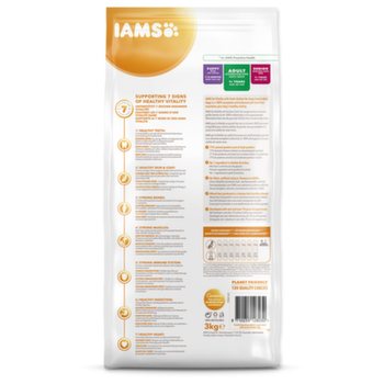 Krmivo IAMS for Vitality pre dospelých psov veľkých plemien je 100% kompletné a vyvážené, odborníkmi zostavené krmivo , ktoré bude vášmu zvieraťu chutiť a svedčiť. Naša nová a vylepšená receptúra pre dospelých psov s čerstvým kuracím mäsom je založená na kvalitných živočíšnych bielkovinách, ktoré boli starostlivo vybrané, aby podporovali sedem znakov zdravej vitality psa. Aby bol váš pes zdravý, aktívny a plný energie, naše lahodné receptúry obsahujú až 77 % živočíšnych bielkovín (z celkového obsahu bielkovín).