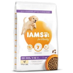 Krmivo IAMS for Vitality pre šteňatá veľkých plemien je 100% kompletné a vyvážené odborníkmi zostavené krmivo , ktoré bude vášmu šteniatku svedčiť. Naša nová a vylepšená receptúra pre šteňatá s čerstvým kuracím mäsom je založená na kvalitných živočíšnych bielkovinách, ktoré boli starostlivo vybrané, aby podporovali sedem znakov zdravej vitality šteňaťa. Aby boli šteňatá zdravá, aktívna a plná energie, obsahujú naše lahodné receptúry až 81 % živočíšnych bielkovín z kuracieho mäsa (z celkového obsahu bielkovín).