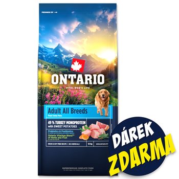 Krmivo Ontario Adult All Breeds Monoproteín Turkey & Sweet Potatoes 2x12kg+Barel ZADARMO