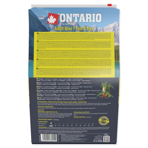 Krmivá Ontario obsahujú kvalitné proteíny, tuky, sacharidy, vitamíny a minerálne látky a to všetko v správnom pomere a tak, aby podiel jednotlivých zložiek pokryl potreby a všetky nutričné požiadavky psieho organizmu.