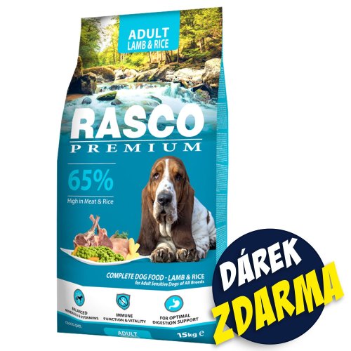 Krmivo Rasco Premium Adult jahňače s ryžou 15kg + Uterák Gump by DF 130x80cm