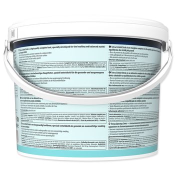 Zloženie: ryby a vedľajšie výrobky z rýb, obilniny, bielkovinové extrakty rastlinného pôvodu, kvasnice, oleje a tuky, mlieko a mliečne výrobky, riasy, cukry, mäkkýše a kôrovce.