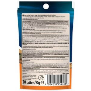 Tieto multi-tablety sú dvojfarebné: oranžová strana obsahuje karotenoidy na posilnenie prirodzeného sfarbenia, zatiaľ čo tmavo zelená strana obsahuje riasy spirulina a chlorella, rastlinné zložky na posilnenie vitality a dlhý život rýb.