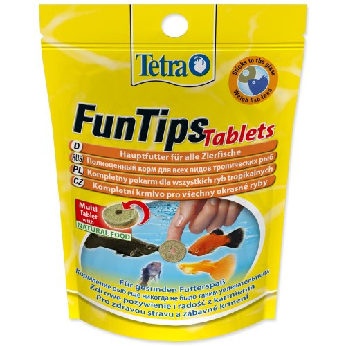 Receptúra Tetra FunTips je od tej pôvodnej stále vylepšovaná. Nové tablety sa môžu pochváliť pôsobivou kombináciou vysoko kvalitných špeciálnych vločiek a viac ako 20% prirodzeného krmiva, ako sú krevety, kríl, gammarus a vodné blchy, čo zaisťuje, že ryby dostávajú obzvlášť výživnú stravu. Toto vyvážené prémiové krmivo poskytuje rybám všetky základné živiny, zatiaľ čo patentovaná* BioActive formula pomáha udržiavať ich imunitný systém zdravý.