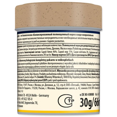 Práškové kompletné krmivo pre poter (v dĺžke do 1cm), obohatené doplnkovými živinami.