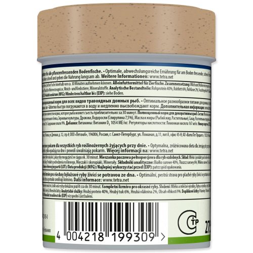 Zloženie: mlieko a mliečne výrobky, ryby a výrobky z rýb, obilniny, kvasnice, rastlinné bielkovinové extrakty, riasy (5% Spirulina maxima), mäkkýše a kôrovce, oleje a tuky, cukry, minerálne látky.