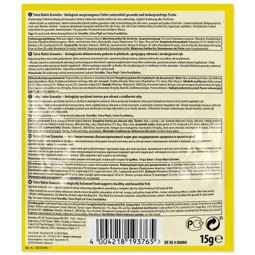 Pomaly klesajúce granule zaručujú plnohodnotnú a pestrú výživu, prírodné farebné aktivátory plne rozvíja prirodzené zafarbenie.
