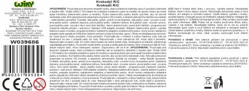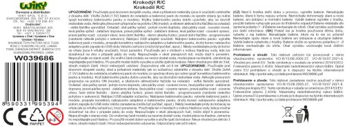 Frekvencia 2.4GHz. Svetelné efekty očí. 3.7V batériový pack do krokodíla súčasťou, 2xAA do ovládača nie sú súčasťou.