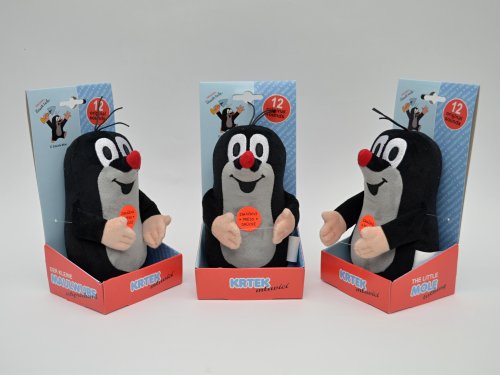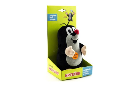 Plyšový hovoriaci Krtko so zvukom na batérie. Veľkosť 16 cm.