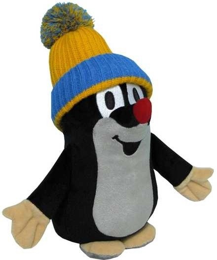 Plyšový Krtko s pletenou odnímateľnou čiapkou. Pranie na 40 ° C. Pre deti bez obmedzenia veku.