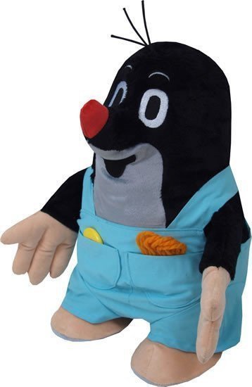 Plyšový krtko v nohavičkách s vreckami na drobnosti. Nohavičky je možné vyzliekať a obliekať.