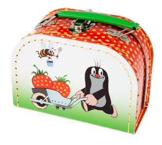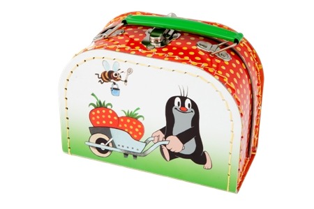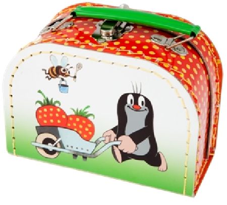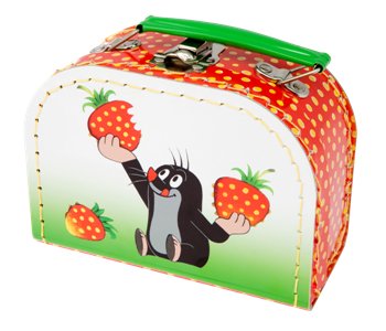 Šitý kufrík s motívom Krtka a jahody je vhodný napríklad na uschávanie hračiek . Veľkosť 16x12x8 cm.