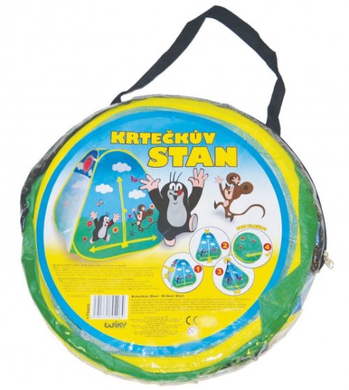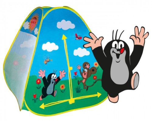 Detský stan s motívom Krtka do detskej izbičky alebo detského kútika určite poteší každé dieťa! V prednej časti otvor na suchý zips, bočné steny z priehľadnej sieťoviny na prívod vzduchu, pružné lamely a praktická taška na zips na uskladnenie. Rozmer 80 x 80 x 85 cm. Vhodné pre deti od 3 rokov.