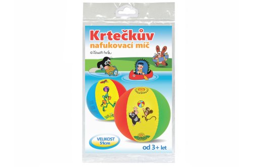 Nafukovacia lopta s motívom obľúbenej rozprávkovej postavičky Krtka. Je vhodný na hranie pri vode, na pláži alebo na záhrade. Rozmer 51 cm. Vhodné od 3 rokov.