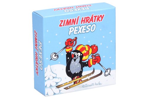 Krtko Pexeso v krabičke zimné hrátky. 64 kartičiek, 32 párov. Rozmer kartičiek 63x63mm. Papier 350g.