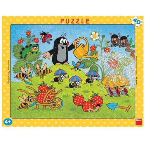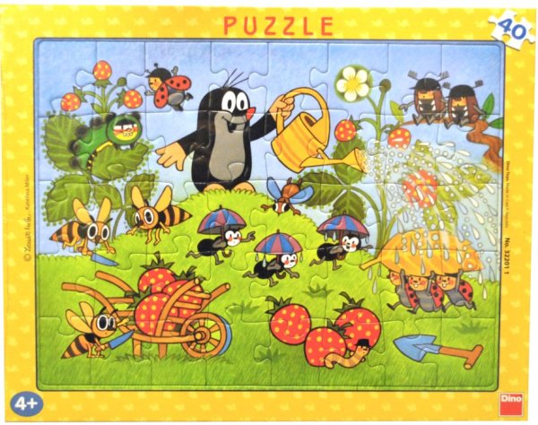 Doskové puzzle s motívom Krtka v jahodách obsahujúce 40 dielikov.