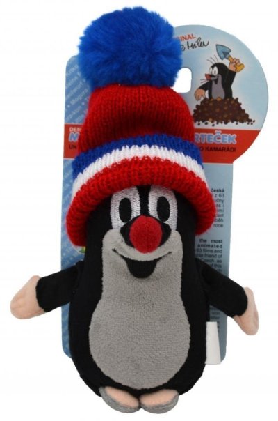 Mikro-plyšový Krtko so snímacou čiapkou vo farbe červeno-modro-bielej trikolory, v spodnej časti naplnený fazuľkami, rozvíjajúce hmatové schopnosti dieťaťa. PrateľnýPranie na 40°C, sušenie max. 50°C. Vyrobené ručne v Č R.Pre deti bez obmedzenia veku.