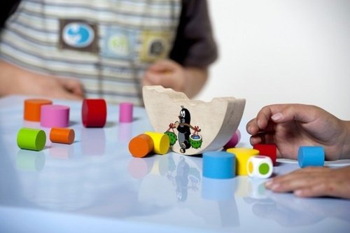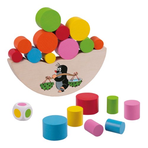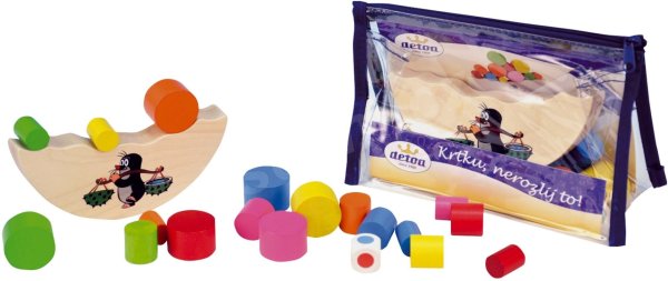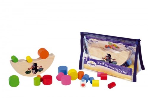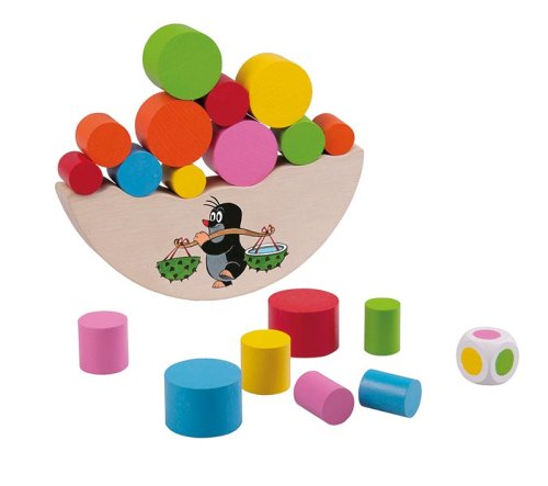 Balančná hračka Krtku nerozlej to! Vhodné pre deti od 4 rokov. Hra slúži na rozvoj jemnej motoriky dieťaťa. Výrobok je zdravotne nezávadný. Hra je určená pre 2 – 6 hráčov. Vždy začína najmladší hráč. Hodí kockou, vyberie valček farby, ktorá mu padla, a vloží valček ľubovoľne na vrch dreveného dielika. Hra pokračuje, kým sa valčeky nerozsypú alebo sa dielik s Krtkom neprevrátia.