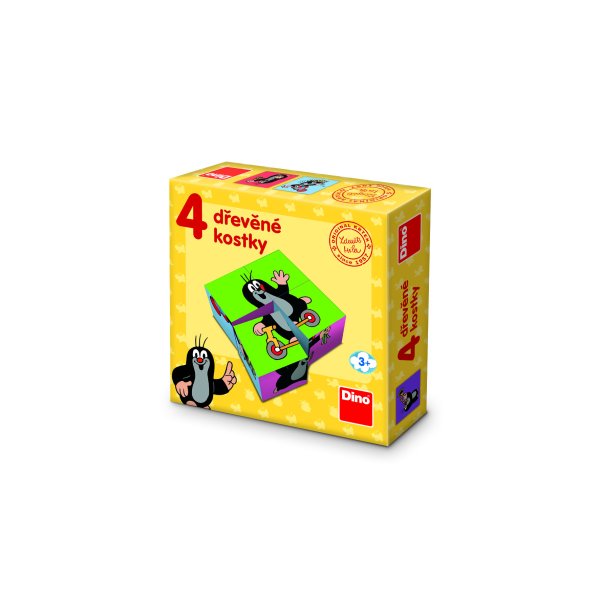 Drevené kocky pre najmenšie deti, ktoré obsahujú 4 dieliky s jednoduchými detskými motívmi.