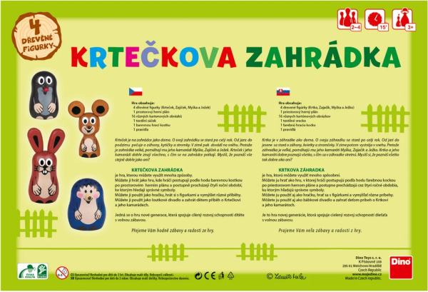 Krtkova záhradka je hra, kde hráči postupujú podľa hodu farebnou kockou po priestorovom hernom pláne a postupne prechádzajú štyri ročné obdobia, ku ktorým hľadajú správne symboly. Vek: 3+