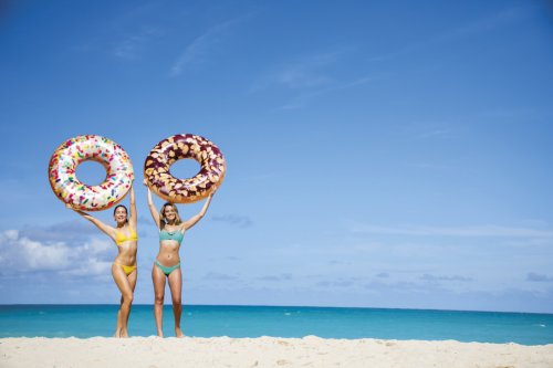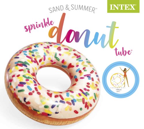Nafukovací kruh donut o veľkosti 99 cm. Vyrobené z kvalitného vinylu. Nafukovací kruh s realistickou potlačou šišky Donutu. Kruh využijete v bazéne aj na dovolenke pri mori. Krásny kúsok, s ktorým bude kúpanie jedna veľká zábava. Súčasťou balenia je aj sada na opravu. Rozmery balenia 18 x 20 x 5 cm. Vhodné pre deti od 9 rokov.