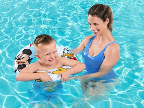 Nafukovací kruh Mickey Mouse má úžasné farebné prevedenie s potlačou obľúbených postavičiek z Mickeyho klbka. Rozmer kruhu je 56cm a je vhodný pre deti vo veku od 3 do 6 rokov. Deti sa v ňom budú cítiť v bezpečí a plávanie si o to viac užijú.