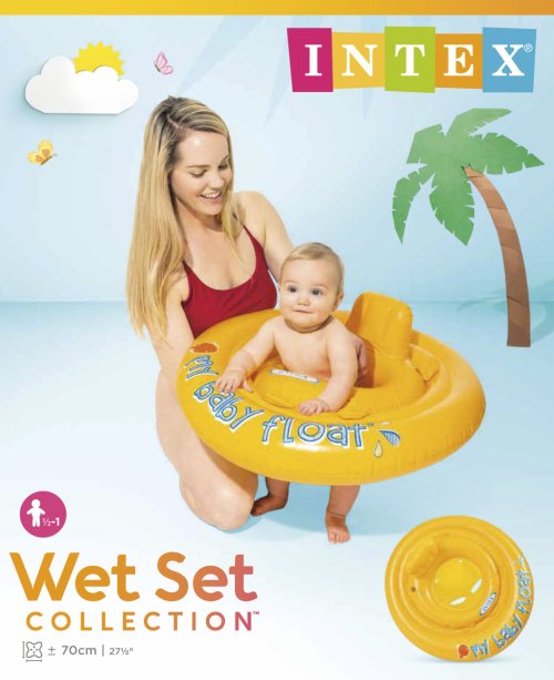 Intex My Baby Float je plávací kruh pre malé deti, ktoré sa zoznamujú s vodným prostredím. Je určený pre deti vo veku 6 - 12 mesiacov s maximálnou nosnosťou 11 kg. Vášmu dieťaťu poskytne maximálnu ochranu a komfort vďaka nafukovacej opierke chrbta a mäkkým okrajom otvorov na nohy. Materiál 0,3 mm vinyl. Rozmer cca 70 cm. Vhodné pre deti od 6 do 12 mesiacov.