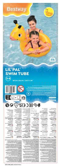 Nafukovacie kruhy sú dodávané v jednoduchom balení s potlačou značky Bestway a jasne uvedenými rozmermi a odporúčaným vekom. Na zadnej strane obalu sú tiež uvedené bezpečnostné upozornenia a pokyny na použitie v niekoľkých jazykoch. Celkovo je tento produkt vhodný pre rodiny, ktoré hľadajú kvalitný a zábavný pomocník pri náuke plávania a pobytu vo vode pre malé deti.