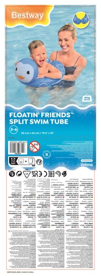 Nafukovací kruh na plávanie Bestway je navrhnutý tak, aby deťom priniesol radosť a bezpečie pri vodných hrách. Kruh je dostupný v troch veselých dizajnových variantoch – korytnačka, tučniak a leňochod, pričom každý motív vyniká svojim hravým vzhľadom a pestrými farbami, ktoré upútajú detskú pozornosť. Zvieracia hlavička je umiestnená na hornej časti kruhu, čo zvyšuje atraktivitu a zároveň slúži ako opierka pri plávaní.