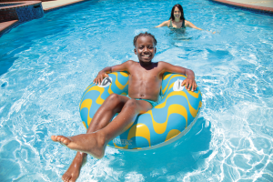 Nafukovací kruh na plávanie pre deti na vodu so vzorom hviezdičiek as dvoma pevnými madlami. Rozmer 91 cm.