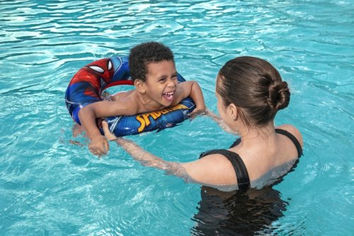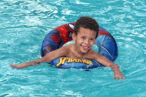 Nafukovací kruh v dizajne Spiderman pre deti od 3 do 6 rokov s priemerom 56 cm.